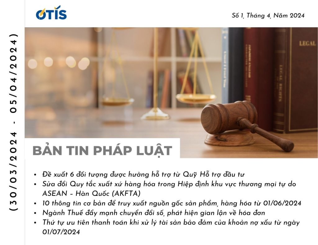 Trên đây là bản tin pháp luật 30/3 – 5/4/2024. Về những thông tin, tin tức cập nhật mới nhất về tình hình kinh tế – xã hội nói chung và pháp luật nói riêng. Hy vọng bản tin của OTIS LAWYERS sẽ mang lại cho bạn đọc những thông tin hữu ích. Xin chân thành cảm ơn!