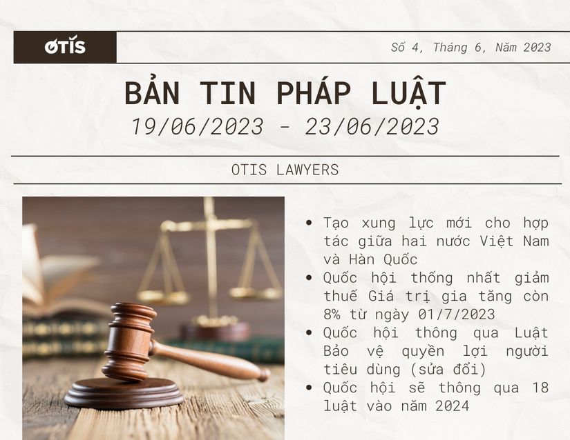 Trên đây là bản tin pháp luật 19/6 – 23/6/2023. Về những thông tin, tin tức cập nhật mới nhất về tình hình kinh tế – xã hội nói chung và pháp luật nói riêng. Hy vọng bản tin của OTIS LAWYERS sẽ mang lại cho bạn đọc những thông tin hữu ích. Xin chân thành cảm ơn!
