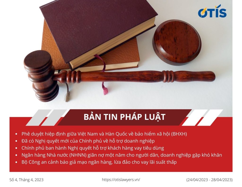 OTIS LAWYERS xin gửi đến bạn đọc bản tin pháp luật 24/4 – 28/4. Tức tuần thứ 4 của tháng 04/2023. Những chính sách mới, những cập nhật về tình hình kinh tế – xã hội nói chung. Và thông tin về lĩnh vực pháp luật nói riêng sẽ được chúng tôi tổng hợp. Trong bản tin pháp luật 24/4 – 28/4 dưới đây.