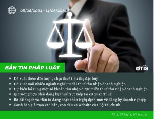 OTIS LAWYERS xin gửi đến bạn đọc bản tin pháp luật 8/6 – 14/6. Tức tuần thứ 2 của tháng 06/2024. Những chính sách mới, những cập nhật về tình hình kinh tế – xã...