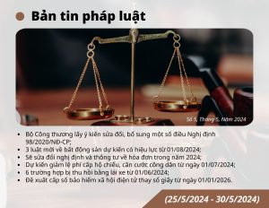 OTIS LAWYERS xin gửi đến bạn đọc bản tin pháp luật 25/5 – 31/5. Tức tuần thứ 5 của tháng 05/2024. Những chính sách mới, những cập nhật về tình hình kinh tế – xã...