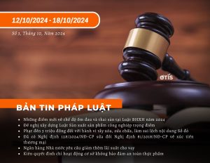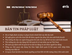 OTIS LAWYERS xin gửi đến bạn đọc bản tin pháp luật 12/10 – 18/10. Tức tuần thứ 3 của tháng 10/2024. Những chính sách mới, những cập nhật về tình hình kinh tế – xã...