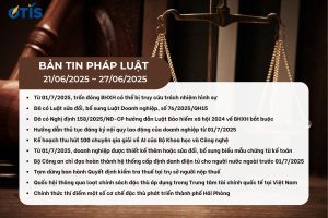 OTIS LAWYERS xin gửi đến bạn đọc bản tin pháp luật 28/06/2025 ~ 04/07/2025. Những chính sách mới, những cập nhật về tình hình kinh tế – xã hội nói chung. Và thông tin về...
