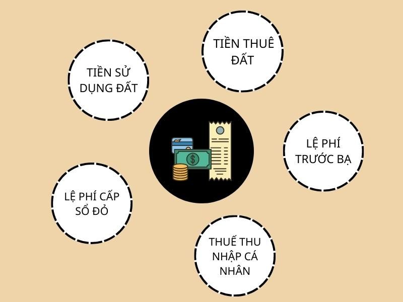 Theo khoản 1 Điều 63 NĐ 43/2014/NĐ-CP nghĩa vụ tài chính gồm: Tiền sử dụng đất, tiền thuê đất, các loại thuế có liên quan đến đất đai và lệ phí trước bạ. Ngoài ra, chủ thể xin cấp sổ đỏ sẽ phải nộp thêm thuế thu nhập cá nhân nếu chuyển nhượng, thừa kế, tặng cho và lệ phí cấp sổ đỏ.