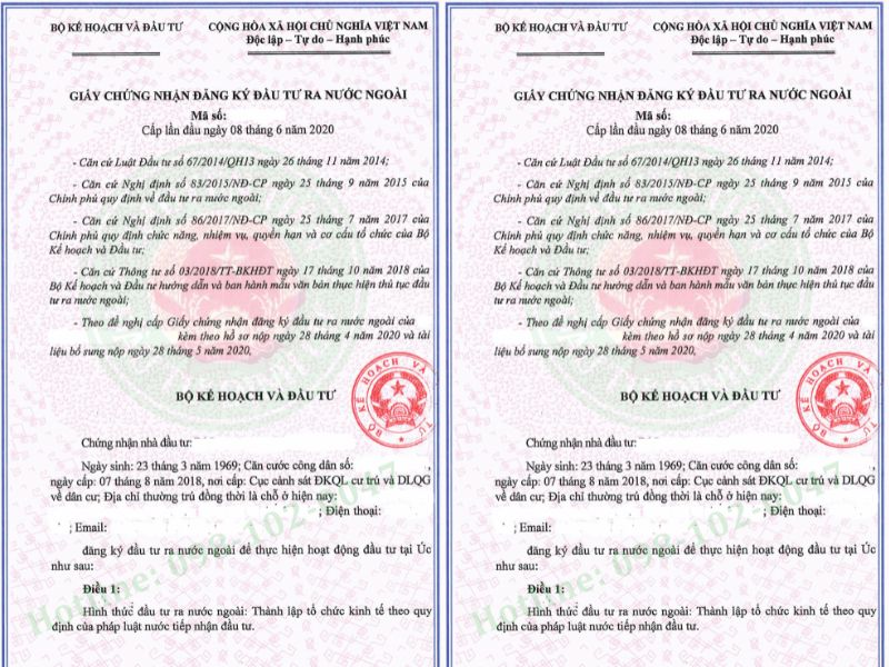 – Văn bản đăng ký đầu tư ra nước ngoài;