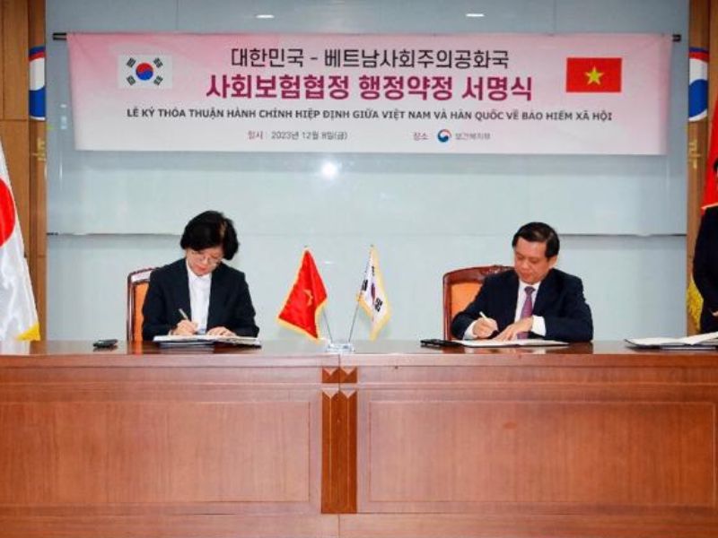 According to information from the Office of the Ministry of Labor, War Invalids and Social Affairs, on December 8, 2023, in Korea, Deputy Minister of Labor, War Invalids and Social Affairs Nguyen Ba Hoan and Deputy Minister of Health and Welfare of Korea Quoc Kim Hyejin signed the Administrative Agreement to implement the Agreement between the Government of Vietnam and the Government of Korea on social insurance.
