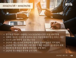 통신법을 자세히 설명하는 163/2024/ND-CP호 의정 이미 발행 2024년 12월 24일, 정부는 전기통신법의 조치를 자세히 설명하고 시행하는 163/2024/ND-CP호 의정을 발표했다. 이에 따라 몇 가지 주목할만한 사항은 다음과 같다. (1) 통신 서비스 재판매 고정 통신 네트워크 요구...