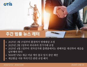 2025년 1월 15일부터 환경허가 면제대상 조정 2024년 11월 29일 국회에서 통과된 2024년 지질 및 광물법 (제54/2024/QH15호)는 2020년 환경보호법 제39조 제3항을 개정 및 보완했다. 이 새로운 조항은 2025년 1월 15일부터 효력이 발생한다. 따라서, 2020년 환경보호법 제39조...