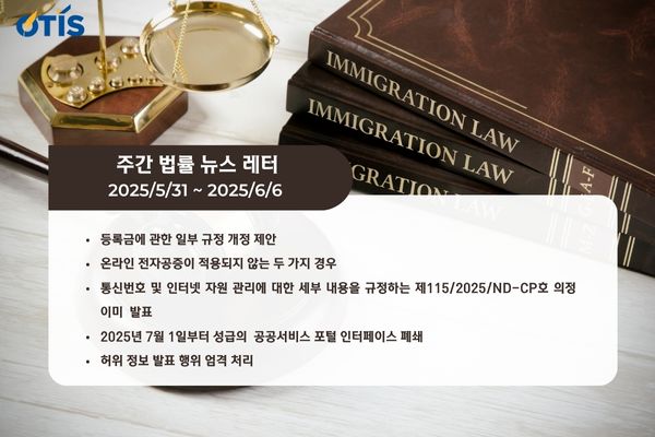 2025/5/31 ~ 6/6: 주간 법률 뉴스  사회 경제 및 기업과 관련된 베트남 법률 규정 및 정책 요약