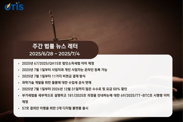 2025/6/28 ~ 7/4: 주간 법률 뉴스  사회 경제 및 기업과 관련된 베트남 법률 규정 및 정책 요약