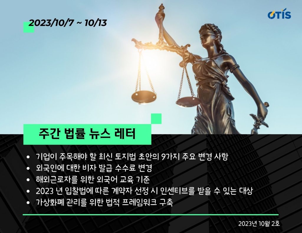 주간 법률 뉴스 레터 (2023/10/7 ~ 10/13): 외국인에 대한 비자 발급 수수료 변경