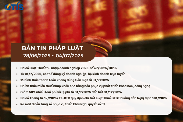 Trên đây là bản tin pháp luật 28/06/2025 ~ 04/07/2025. Về những thông tin, tin tức cập nhật mới nhất về tình hình kinh tế – xã hội nói chung và pháp luật nói riêng. Hy vọng bản tin của OTIS LAWYERS sẽ mang lại cho bạn đọc những thông tin hữu ích. Xin chân thành cảm ơn!