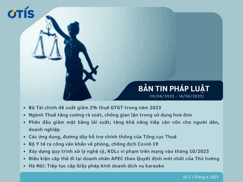 Trên đây là bản tin pháp luật 10/4 – 14/4/2023. Về những thông tin, tin tức cập nhật mới nhất về tình hình kinh tế – xã hội nói chung và pháp luật nói riêng. Hy vọng bản tin của OTIS LAWYERS sẽ mang lại cho bạn đọc những thông tin hữu ích. Xin chân thành cảm ơn!