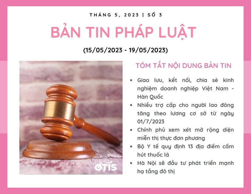 Trên đây là bản tin pháp luật 15/5 – 19/5/2023. Về những thông tin, tin tức cập nhật mới nhất về tình hình kinh tế – xã hội nói chung và pháp luật nói riêng. Hy vọng bản tin của OTIS LAWYERS sẽ mang lại cho bạn đọc những thông tin hữu ích. Xin chân thành cảm ơn!