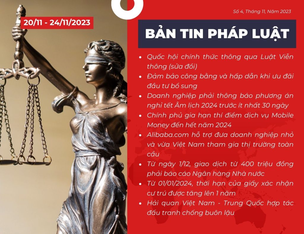 Home / BẢN TIN PHÁP LUẬT (TUẦN 20/11/2023 ~ 24/11/2023): QUỐC HỘI CHÍNH THỨC THÔNG QUA LUẬT VIỄN THÔNG (SỬA ĐỔI)