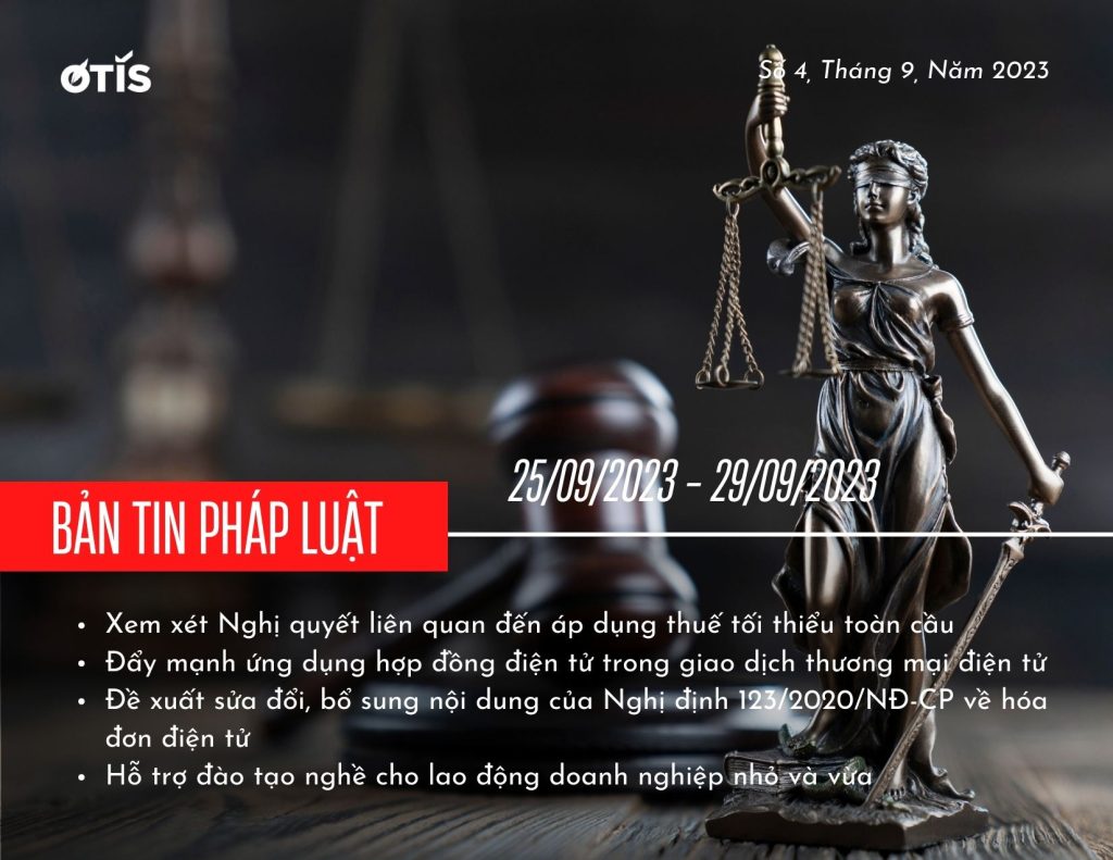 OTIS LAWYERS xin gửi đến bạn đọc bản tin pháp luật 25/9 – 29/9. Tức tuần thứ 4 của tháng 09/2023. Những chính sách mới, những cập nhật về tình hình kinh tế – xã hội nói chung. Và thông tin về lĩnh vực pháp luật nói riêng sẽ được chúng tôi tổng hợp. Trong bản tin pháp luật 25/9 – 29/9 dưới đây.