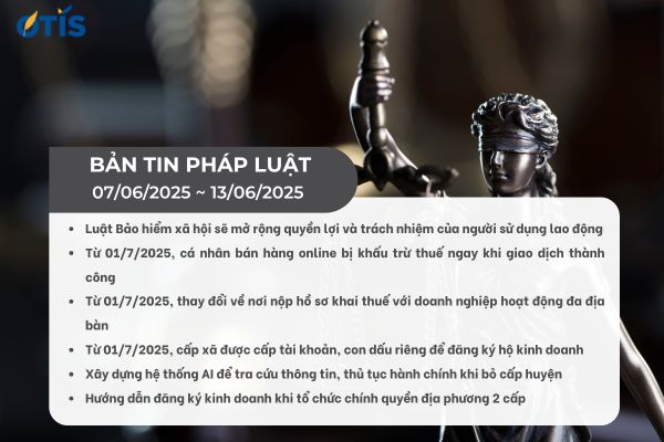 OTIS LAWYERS xin gửi đến bạn đọc bản tin pháp luật  07/06/2025 ~ 13/06/2025. Những chính sách mới, những cập nhật về tình hình kinh tế – xã hội nói chung. Và thông tin về lĩnh vực pháp luật nói riêng sẽ được chúng tôi tổng hợp trong bản tin pháp luật 07/06/2025 ~ 13/06/2025 dưới đây.